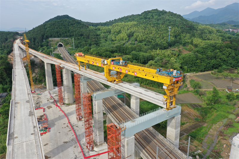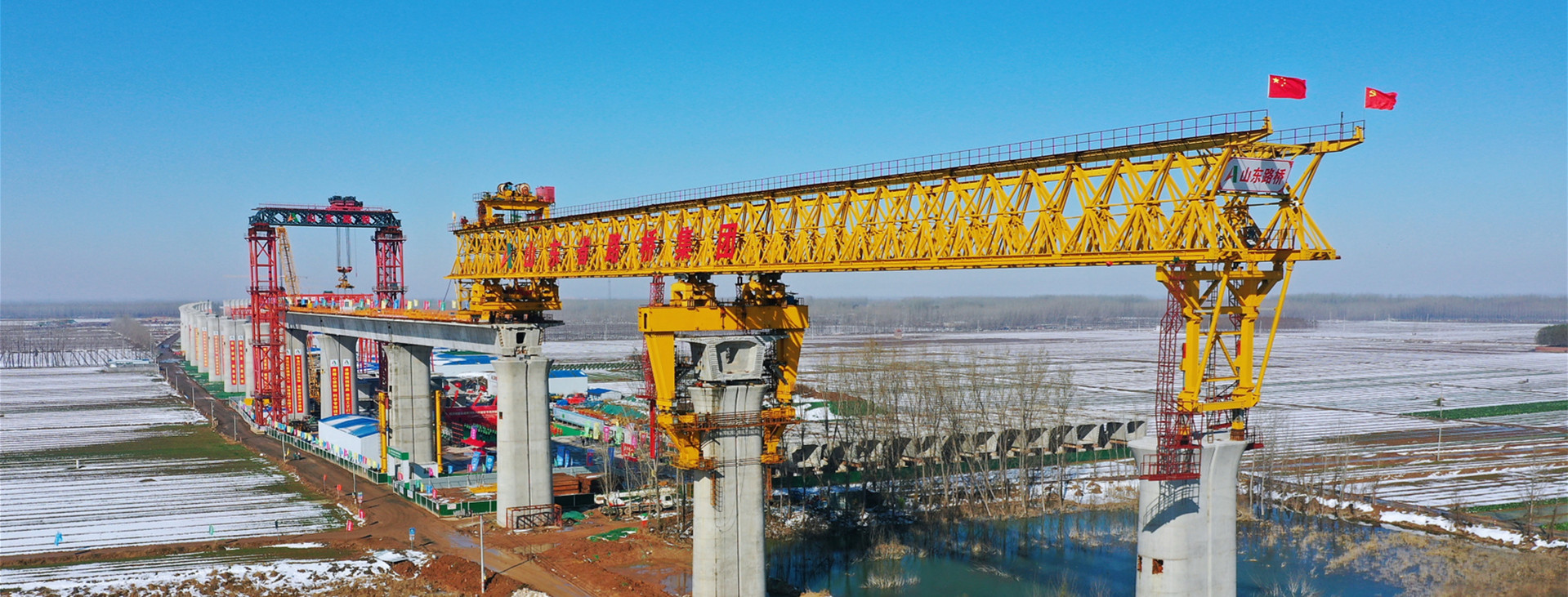 Since its establishment, for different bridge construction markets, the Company has successively designed, developed and purchased 550-900 tons bridge erecting machines, beam transporting cars, beam lifting machines and beam moving trolleys for the whole-hole erection of single and double-line simply supported box girders of high-speed railways; 260-300 tons bridge erecting machines, beam transporting cars and beam lifting machines for the erection of simply supported U-shaped beams and double-line juxtaposed box beams in urban rail transit; 750-2,400 tons bridge erecting machines for long-span box girders and continuous girders segmental construction of high-speed railway and expressway; 450-700 tons segmental beam bridge erecting machines and 50-160 tons bridge deck crane, etc. for segmental beam suspension construction of urban rail transit.